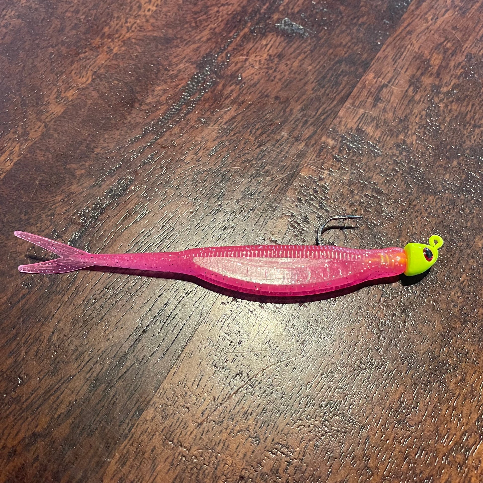 Heavy duty chartreuse jig head. 1/4 oz with a 2/0 hook and 3D eyes. 5 jigs per bag.